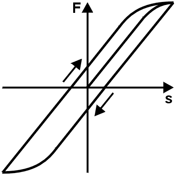 Das Federungsverhalten wird durch Reibung beeinflusst. Dies wird in Form einer Hystereseschleife dargestellt.